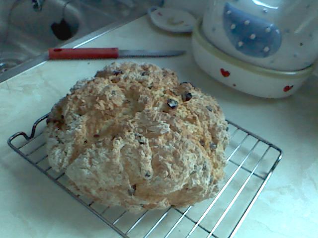 In our house, this is called "spotty dog" (because the sultanas in it make it spotty!) and we normally eat it for brunch or breakfast at the weekends. I made it today for everyone to enjoy for a late breakfast after we had shopped at the supermarket, and we all agreed it is definitely best eaten warm, straight from the oven (butter and jam are optional!). I normally make this in one big scone and divide it into wedges, but you can also cut it into individual portions before you bake it, in which case you will need to shorten the cooking time a little.